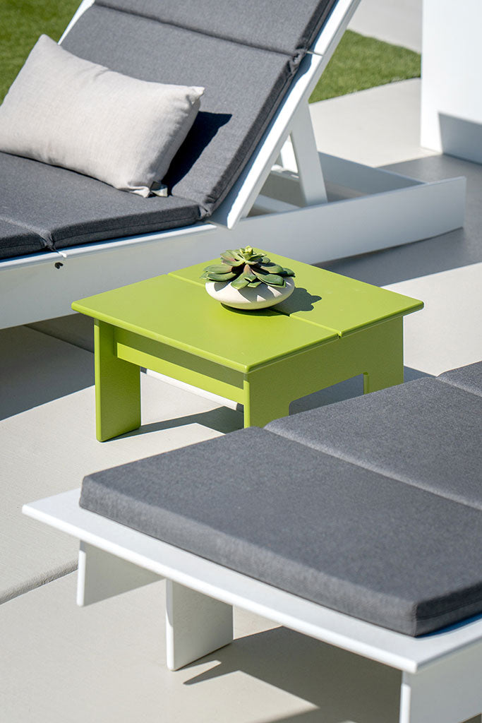 Loll products are made with recycled high-density polyethylene (HDPE) primarily from milk jugs. Milk jugs are used due to their lack of pigment so Loll’s vibrant colors can be created. As Loll material is a post-consumer recycled material, the medium to create the material does inevitably fluctuate. Although we do continuously strive for the best consistency possible, material color and texture may slightly vary from sheet to sheet and thus product to product may have slight variances. However, with that said, its nothing to worry about as we do our best to catch these inconsistencies in the shop. We also use USA made aluminum inserts mated with a 304 grade stainless steel bolt in all joinery. Richlite paper composite is used for structural elements in some pieces. Arbor Wood thermally modified wood can also be found in a select few products. All our materials are chosen for their high quality, no maintenance, performance and longevity. We want you to enjoy your furniture, not work on it.