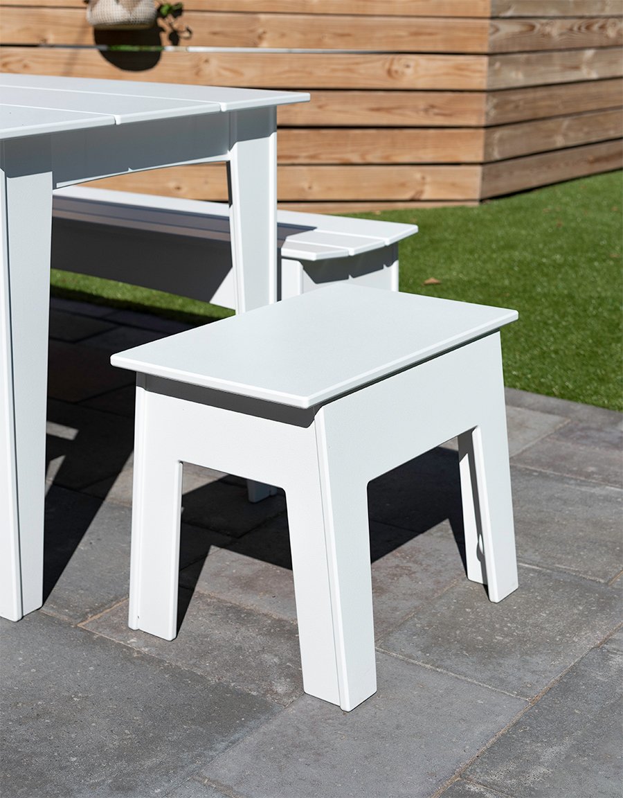 Loll products are made with recycled high-density polyethylene (HDPE) primarily from milk jugs. Milk jugs are used due to their lack of pigment so Loll’s vibrant colors can be created. As Loll material is a post-consumer recycled material, the medium to create the material does inevitably fluctuate. Although we do continuously strive for the best consistency possible, material color and texture may slightly vary from sheet to sheet and thus product to product may have slight variances. However, with that said, its nothing to worry about as we do our best to catch these inconsistencies in the shop. We also use USA made aluminum inserts mated with a 304 grade stainless steel bolt in all joinery. Richlite paper composite is used for structural elements in some pieces. Arbor Wood thermally modified wood can also be found in a select few products. All our materials are chosen for their high quality, no maintenance, performance and longevity. We want you to enjoy your furniture, not work on it.