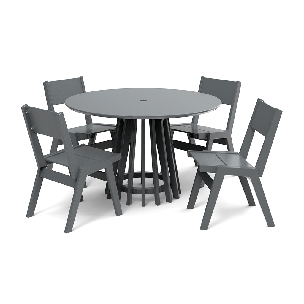 Loll products are made with recycled high-density polyethylene (HDPE) primarily from milk jugs. Milk jugs are used due to their lack of pigment so Loll’s vibrant colors can be created. As Loll material is a post-consumer recycled material, the medium to create the material does inevitably fluctuate. Although we do continuously strive for the best consistency possible, material color and texture may slightly vary from sheet to sheet and thus product to product may have slight variances. However, with that said, its nothing to worry about as we do our best to catch these inconsistencies in the shop. We also use USA made aluminum inserts mated with a 304 grade stainless steel bolt in all joinery. Richlite paper composite is used for structural elements in some pieces. Arbor Wood thermally modified wood can also be found in a select few products. All our materials are chosen for their high quality, no maintenance, performance and longevity. We want you to enjoy your furniture, not work on it.