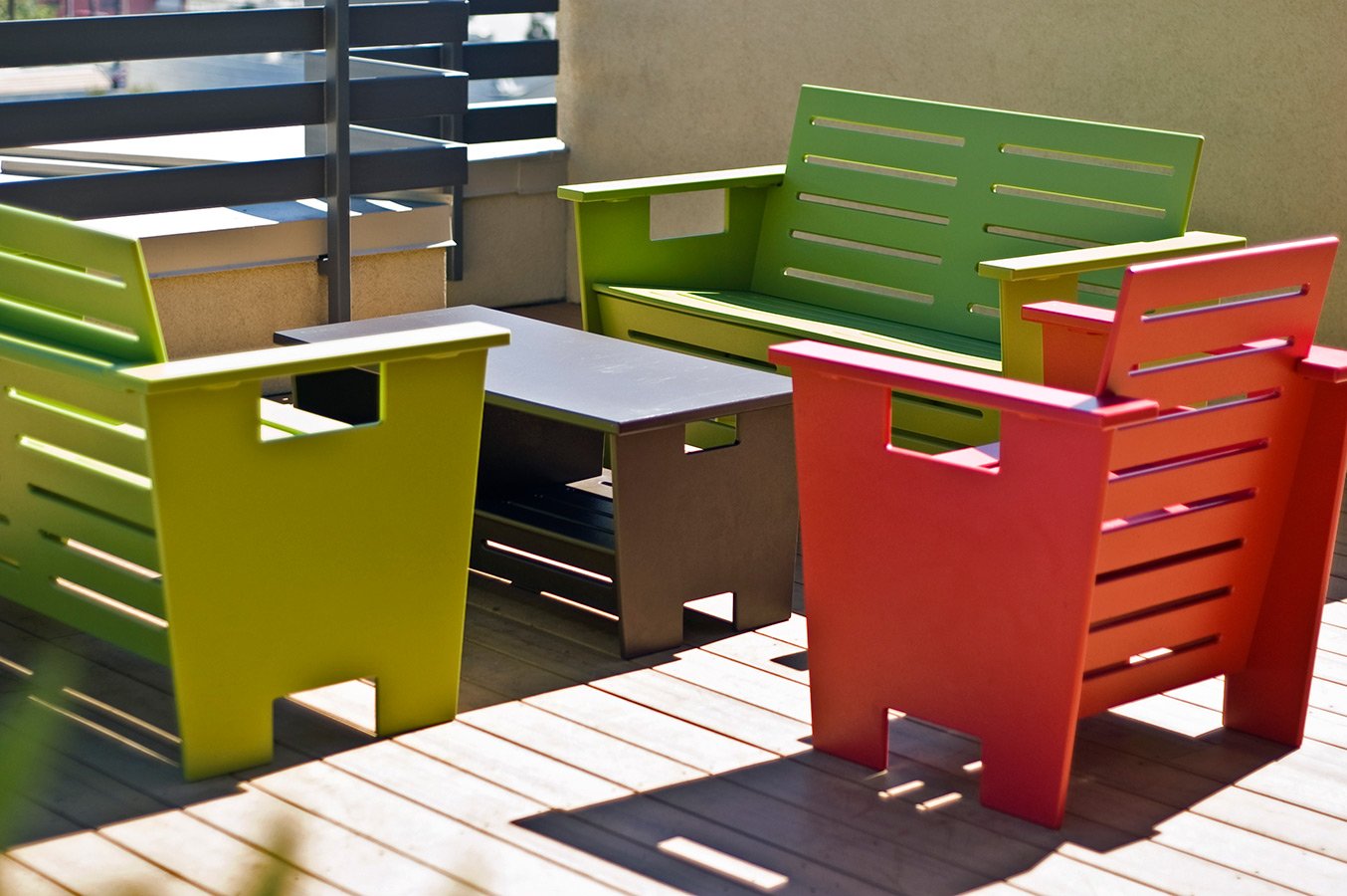 Loll products are made with recycled high-density polyethylene (HDPE) primarily from milk jugs. Milk jugs are used due to their lack of pigment so Loll’s vibrant colors can be created. As Loll material is a post-consumer recycled material, the medium to create the material does inevitably fluctuate. Although we do continuously strive for the best consistency possible, material color and texture may slightly vary from sheet to sheet and thus product to product may have slight variances. However, with that said, its nothing to worry about as we do our best to catch these inconsistencies in the shop. We also use USA made aluminum inserts mated with a 304 grade stainless steel bolt in all joinery. Richlite paper composite is used for structural elements in some pieces. Arbor Wood thermally modified wood can also be found in a select few products. All our materials are chosen for their high quality, no maintenance, performance and longevity. We want you to enjoy your furniture, not work on it.