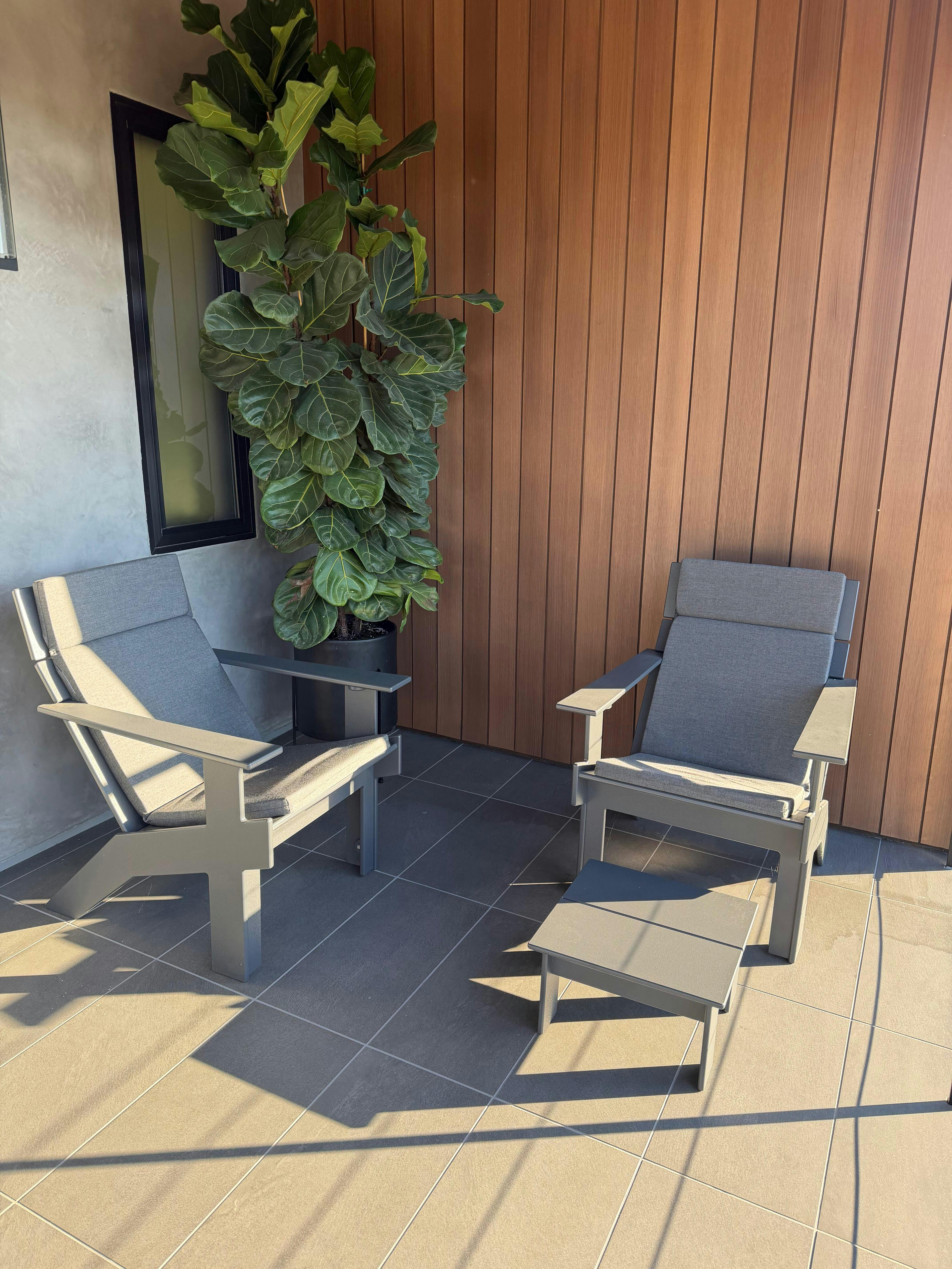 Loll products are made with recycled high-density polyethylene (HDPE) primarily from milk jugs. Milk jugs are used due to their lack of pigment so Loll’s vibrant colors can be created. As Loll material is a post-consumer recycled material, the medium to create the material does inevitably fluctuate. Although we do continuously strive for the best consistency possible, material color and texture may slightly vary from sheet to sheet and thus product to product may have slight variances. However, with that said, its nothing to worry about as we do our best to catch these inconsistencies in the shop. We also use USA made aluminum inserts mated with a 304 grade stainless steel bolt in all joinery. Richlite paper composite is used for structural elements in some pieces. Arbor Wood thermally modified wood can also be found in a select few products. All our materials are chosen for their high quality, no maintenance, performance and longevity. We want you to enjoy your furniture, not work on it.