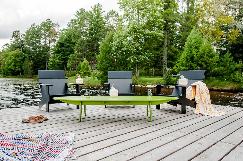 Loll products are made with recycled high-density polyethylene (HDPE) primarily from milk jugs. Milk jugs are used due to their lack of pigment so Loll’s vibrant colors can be created. As Loll material is a post-consumer recycled material, the medium to create the material does inevitably fluctuate. Although we do continuously strive for the best consistency possible, material color and texture may slightly vary from sheet to sheet and thus product to product may have slight variances. However, with that said, its nothing to worry about as we do our best to catch these inconsistencies in the shop. We also use USA made aluminum inserts mated with a 304 grade stainless steel bolt in all joinery. Richlite paper composite is used for structural elements in some pieces. Arbor Wood thermally modified wood can also be found in a select few products. All our materials are chosen for their high quality, no maintenance, performance and longevity. We want you to enjoy your furniture, not work on it.