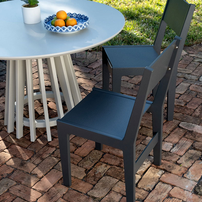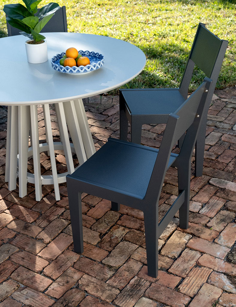 Loll products are made with recycled high-density polyethylene (HDPE) primarily from milk jugs. Milk jugs are used due to their lack of pigment so Loll’s vibrant colors can be created. As Loll material is a post-consumer recycled material, the medium to create the material does inevitably fluctuate. Although we do continuously strive for the best consistency possible, material color and texture may slightly vary from sheet to sheet and thus product to product may have slight variances. However, with that said, its nothing to worry about as we do our best to catch these inconsistencies in the shop. We also use USA made aluminum inserts mated with a 304 grade stainless steel bolt in all joinery. Richlite paper composite is used for structural elements in some pieces. Arbor Wood thermally modified wood can also be found in a select few products. All our materials are chosen for their high quality, no maintenance, performance and longevity. We want you to enjoy your furniture, not work on it.