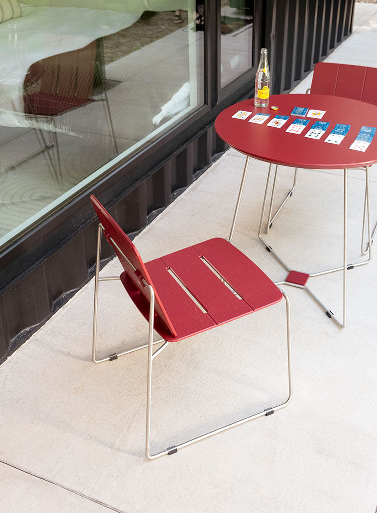 Loll products are made with recycled high-density polyethylene (HDPE) primarily from milk jugs. Milk jugs are used due to their lack of pigment so Loll’s vibrant colors can be created. As Loll material is a post-consumer recycled material, the medium to create the material does inevitably fluctuate. Although we do continuously strive for the best consistency possible, material color and texture may slightly vary from sheet to sheet and thus product to product may have slight variances. However, with that said, its nothing to worry about as we do our best to catch these inconsistencies in the shop. We also use USA made aluminum inserts mated with a 304 grade stainless steel bolt in all joinery. Richlite paper composite is used for structural elements in some pieces. Arbor Wood thermally modified wood can also be found in a select few products. All our materials are chosen for their high quality, no maintenance, performance and longevity. We want you to enjoy your furniture, not work on it.