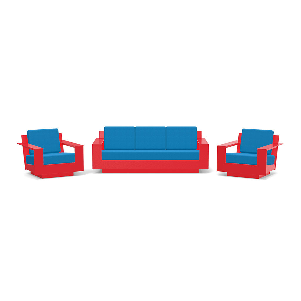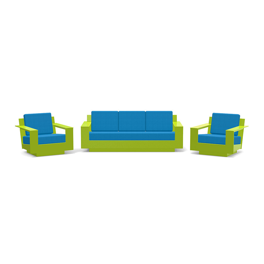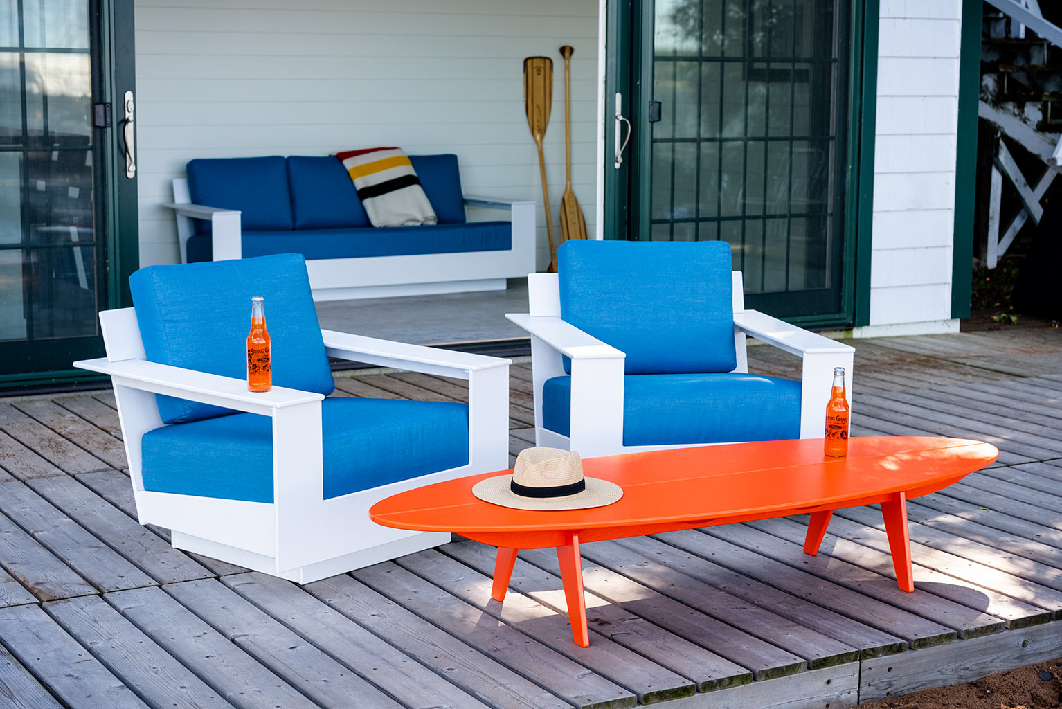 Loll products are made with recycled high-density polyethylene (HDPE) primarily from milk jugs. Milk jugs are used due to their lack of pigment so Loll’s vibrant colors can be created. As Loll material is a post-consumer recycled material, the medium to create the material does inevitably fluctuate. Although we do continuously strive for the best consistency possible, material color and texture may slightly vary from sheet to sheet and thus product to product may have slight variances. However, with that said, its nothing to worry about as we do our best to catch these inconsistencies in the shop. We also use USA made aluminum inserts mated with a 304 grade stainless steel bolt in all joinery. Richlite paper composite is used for structural elements in some pieces. Arbor Wood thermally modified wood can also be found in a select few products. All our materials are chosen for their high quality, no maintenance, performance and longevity. We want you to enjoy your furniture, not work on it.