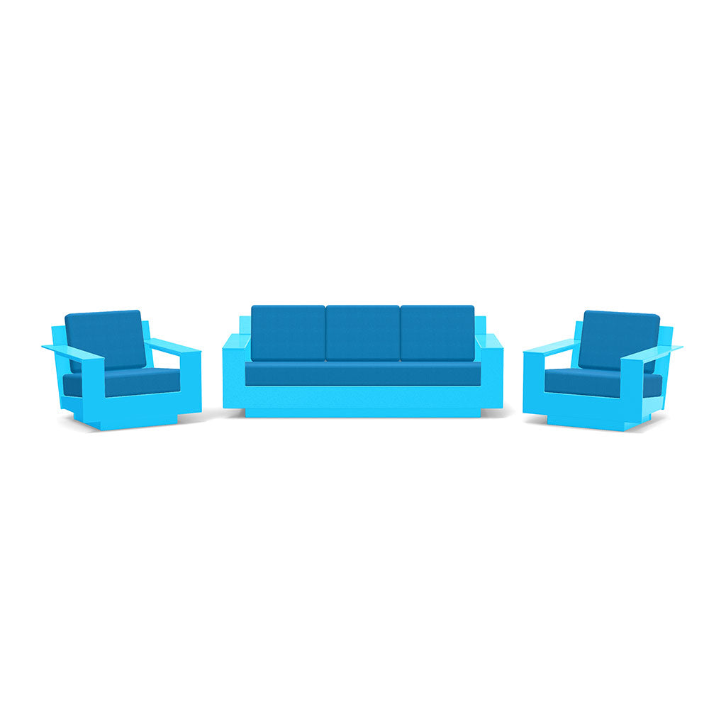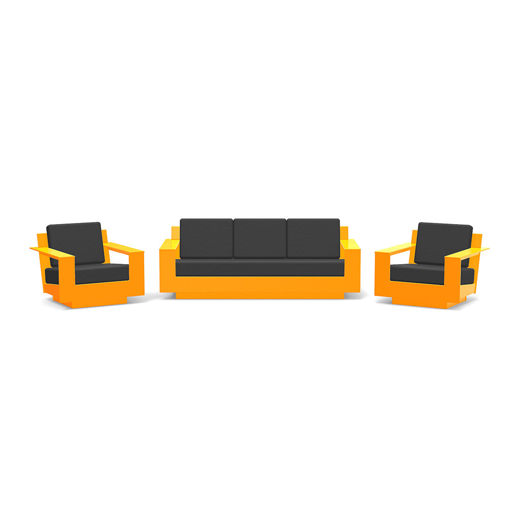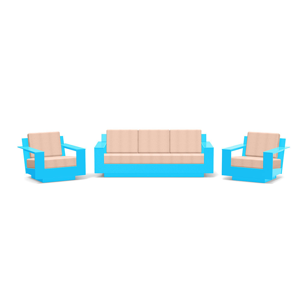 Loll products are made with recycled high-density polyethylene (HDPE) primarily from milk jugs. Milk jugs are used due to their lack of pigment so Loll’s vibrant colors can be created. As Loll material is a post-consumer recycled material, the medium to create the material does inevitably fluctuate. Although we do continuously strive for the best consistency possible, material color and texture may slightly vary from sheet to sheet and thus product to product may have slight variances. However, with that said, its nothing to worry about as we do our best to catch these inconsistencies in the shop. We also use USA made aluminum inserts mated with a 304 grade stainless steel bolt in all joinery. Richlite paper composite is used for structural elements in some pieces. Arbor Wood thermally modified wood can also be found in a select few products. All our materials are chosen for their high quality, no maintenance, performance and longevity. We want you to enjoy your furniture, not work on it.