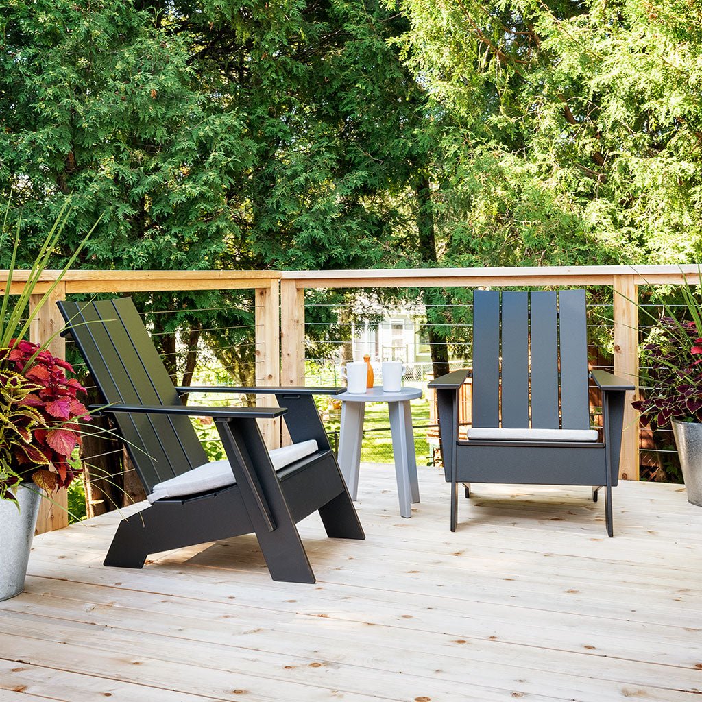 Loll products are made with recycled high-density polyethylene (HDPE) primarily from milk jugs. Milk jugs are used due to their lack of pigment so Loll’s vibrant colors can be created. As Loll material is a post-consumer recycled material, the medium to create the material does inevitably fluctuate. Although we do continuously strive for the best consistency possible, material color and texture may slightly vary from sheet to sheet and thus product to product may have slight variances. However, with that said, its nothing to worry about as we do our best to catch these inconsistencies in the shop. We also use USA made aluminum inserts mated with a 304 grade stainless steel bolt in all joinery. Richlite paper composite is used for structural elements in some pieces. Arbor Wood thermally modified wood can also be found in a select few products. All our materials are chosen for their high quality, no maintenance, performance and longevity. We want you to enjoy your furniture, not work on it.