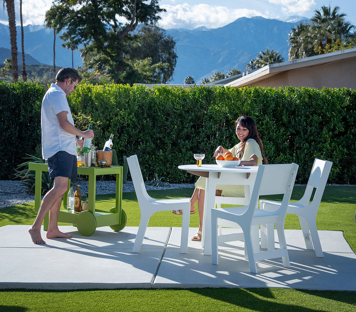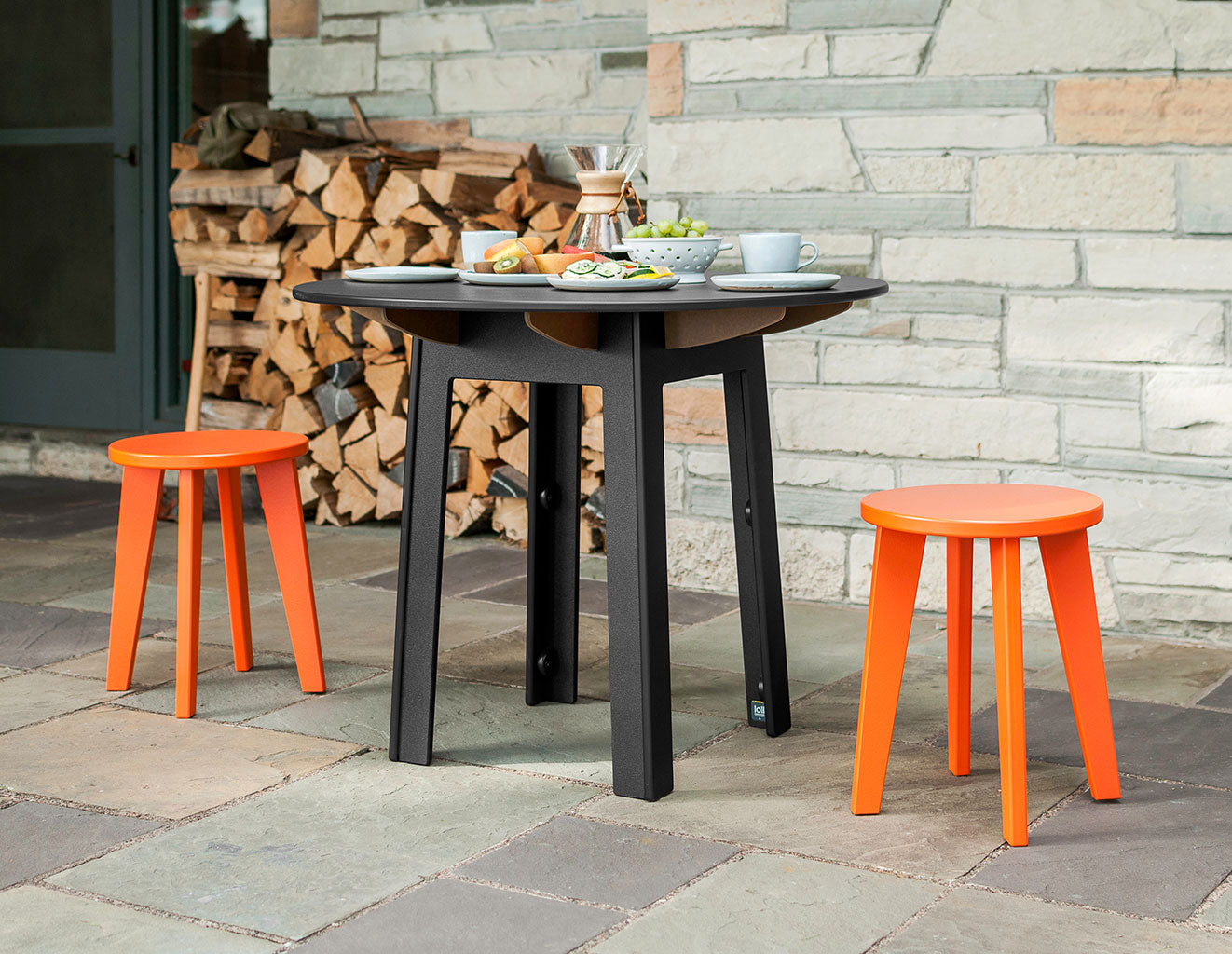 Loll products are made with recycled high-density polyethylene (HDPE) primarily from milk jugs. Milk jugs are used due to their lack of pigment so Loll’s vibrant colors can be created. As Loll material is a post-consumer recycled material, the medium to create the material does inevitably fluctuate. Although we do continuously strive for the best consistency possible, material color and texture may slightly vary from sheet to sheet and thus product to product may have slight variances. However, with that said, its nothing to worry about as we do our best to catch these inconsistencies in the shop. We also use USA made aluminum inserts mated with a 304 grade stainless steel bolt in all joinery. Richlite paper composite is used for structural elements in some pieces. Arbor Wood thermally modified wood can also be found in a select few products. All our materials are chosen for their high quality, no maintenance, performance and longevity. We want you to enjoy your furniture, not work on it.