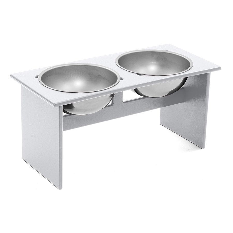 I have had the dpuble one for water for two dogs and singles for each for food. for a few year. I just bought more for a second home. They are a great height, easy to clean and look clean and sharp. I love that I am supporting a US company repurposing post consumer plastic.