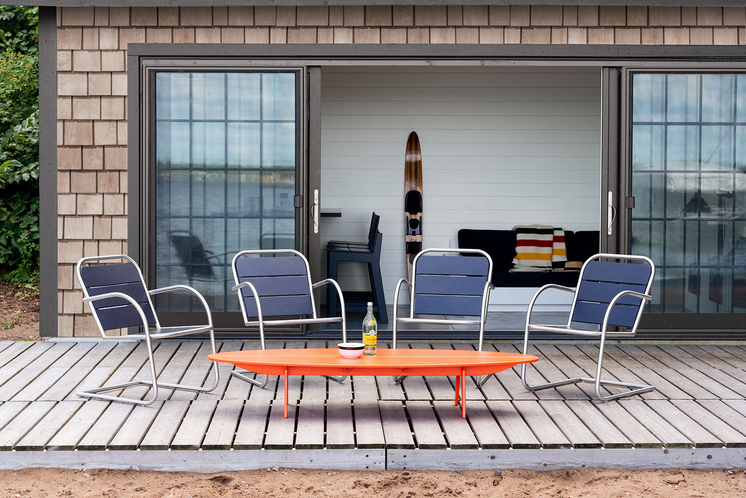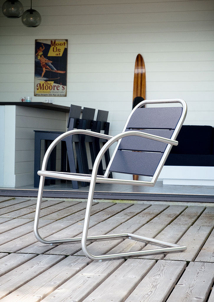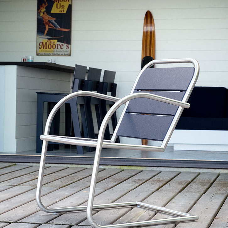 Loll products are made with recycled high-density polyethylene (HDPE) primarily from milk jugs. Milk jugs are used due to their lack of pigment so Loll’s vibrant colors can be created. As Loll material is a post-consumer recycled material, the medium to create the material does inevitably fluctuate. Although we do continuously strive for the best consistency possible, material color and texture may slightly vary from sheet to sheet and thus product to product may have slight variances. However, with that said, its nothing to worry about as we do our best to catch these inconsistencies in the shop. We also use USA made aluminum inserts mated with a 304 grade stainless steel bolt in all joinery. Richlite paper composite is used for structural elements in some pieces. Arbor Wood thermally modified wood can also be found in a select few products. All our materials are chosen for their high quality, no maintenance, performance and longevity. We want you to enjoy your furniture, not work on it.