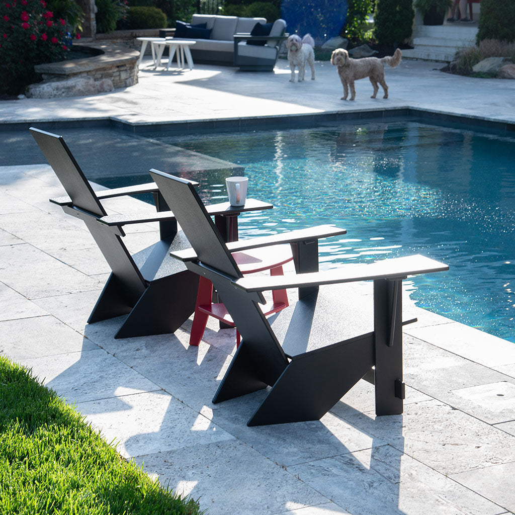 Loll products are made with recycled high-density polyethylene (HDPE) primarily from milk jugs. Milk jugs are used due to their lack of pigment so Loll’s vibrant colors can be created. As Loll material is a post-consumer recycled material, the medium to create the material does inevitably fluctuate. Although we do continuously strive for the best consistency possible, material color and texture may slightly vary from sheet to sheet and thus product to product may have slight variances. However, with that said, its nothing to worry about as we do our best to catch these inconsistencies in the shop. We also use USA made aluminum inserts mated with a 304 grade stainless steel bolt in all joinery. Richlite paper composite is used for structural elements in some pieces. Arbor Wood thermally modified wood can also be found in a select few products. All our materials are chosen for their high quality, no maintenance, performance and longevity. We want you to enjoy your furniture, not work on it.